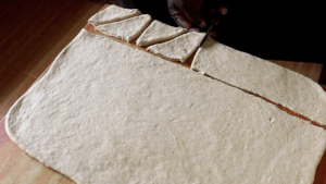 - Shape the Mahamri:Deflate the dough and knead for a minute.Roll it out to 1 cm thick, and cut into triangles with a sharp knife. Optionally, arrange the shaped dough pieces on the floured kneading surface, cover with a clean kitchen towel, and let them rest for another 20 minutes for puffier mahamri.