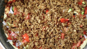- Prepare the Meat ToppingNext, prepare the meat topping. In a suitable pan, heat the oil and fry the onions until soft and tender.Add the garlic and ginger, then cook for a few minutes until the mixture begins to turn lightly golden.Stir in the spices and a little salt to taste, mixing continuously to combine the flavors.Add the minced meat and cook while stirring frequently to break up any lumps, allowing it to brown evenly.Cover the pan and let the meat cook until all the water has evaporated and the mixture is nicely cooked through.Once done, set aside to cool slightly as you prepare the pizza base.